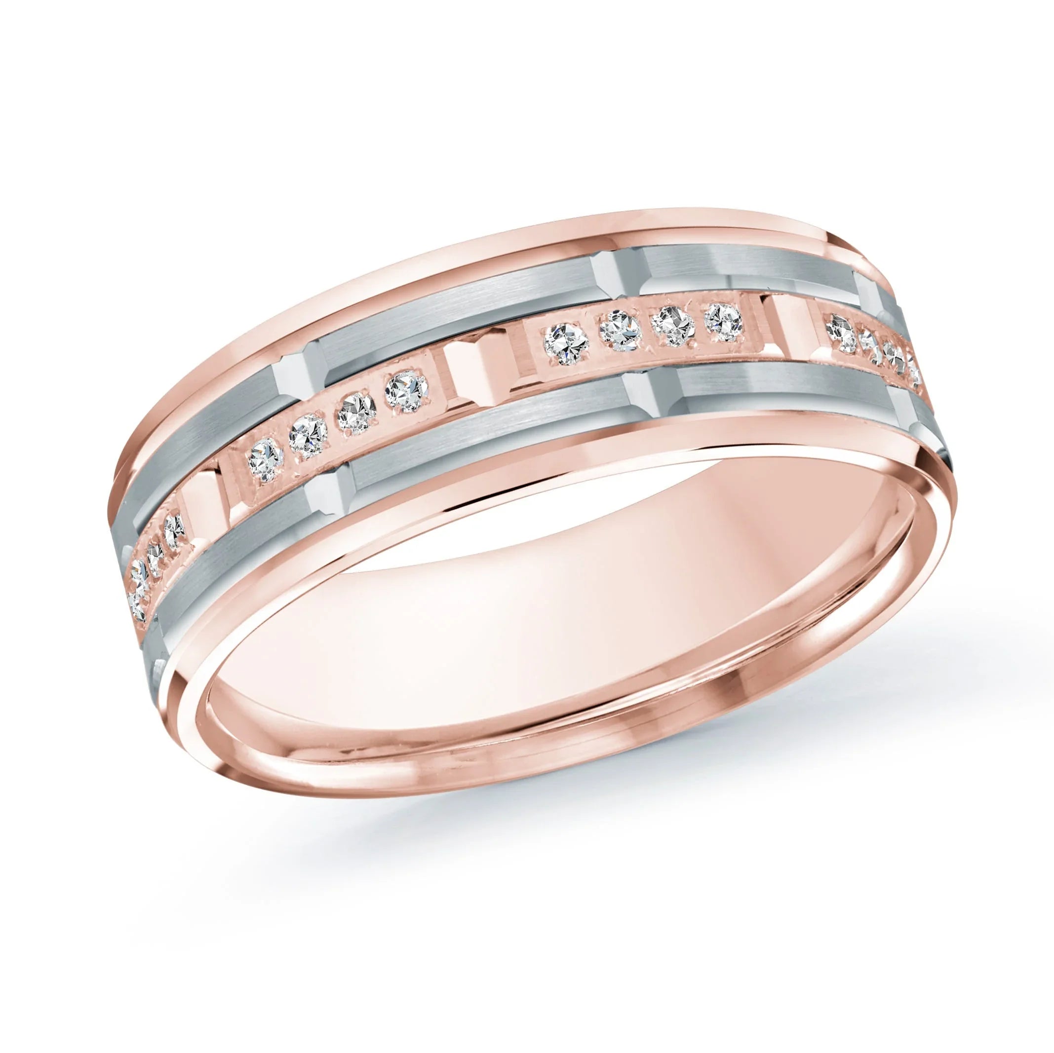 Anillo de oro rosa de 14 quilates con oro blanco de 14 quilates y diamantes incrustados de la colección Executif de Malo - MRD-087-7PW32