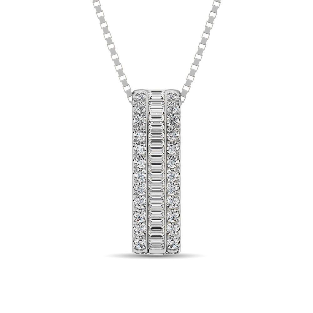 Colgante de barra colgante en oro blanco de 14 quilates con diamantes redondos y baguette de 1/3 ct.