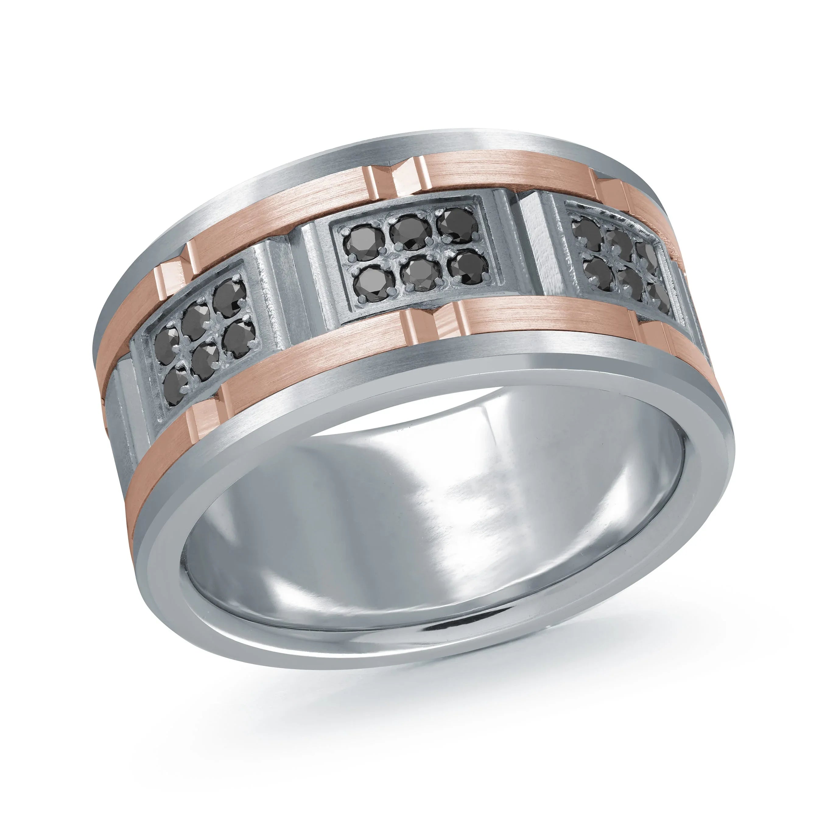 Anillo de oro blanco de 14 quilates con oro rosa de 14 quilates y fibra de carbono de la colección Tantalum de Malo - MRDTN-057-11WPBD