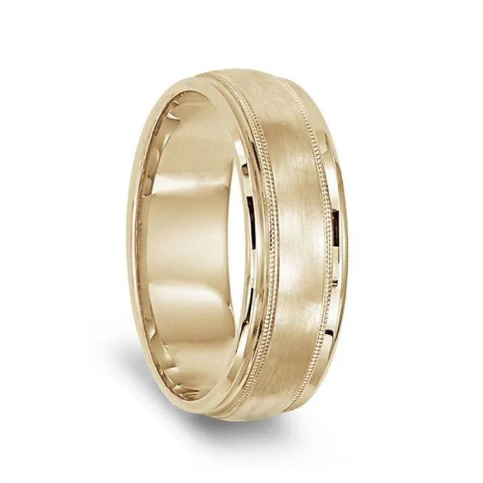 Anillo de bodas milgrain para hombre en oro amarillo de 14 k con centro cepillado y bordes pulidos (7 mm)