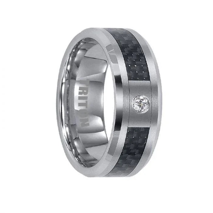 Banda de fibra de carbono negra con bordes biselados y diamantes de Triton Rings (8 mm)