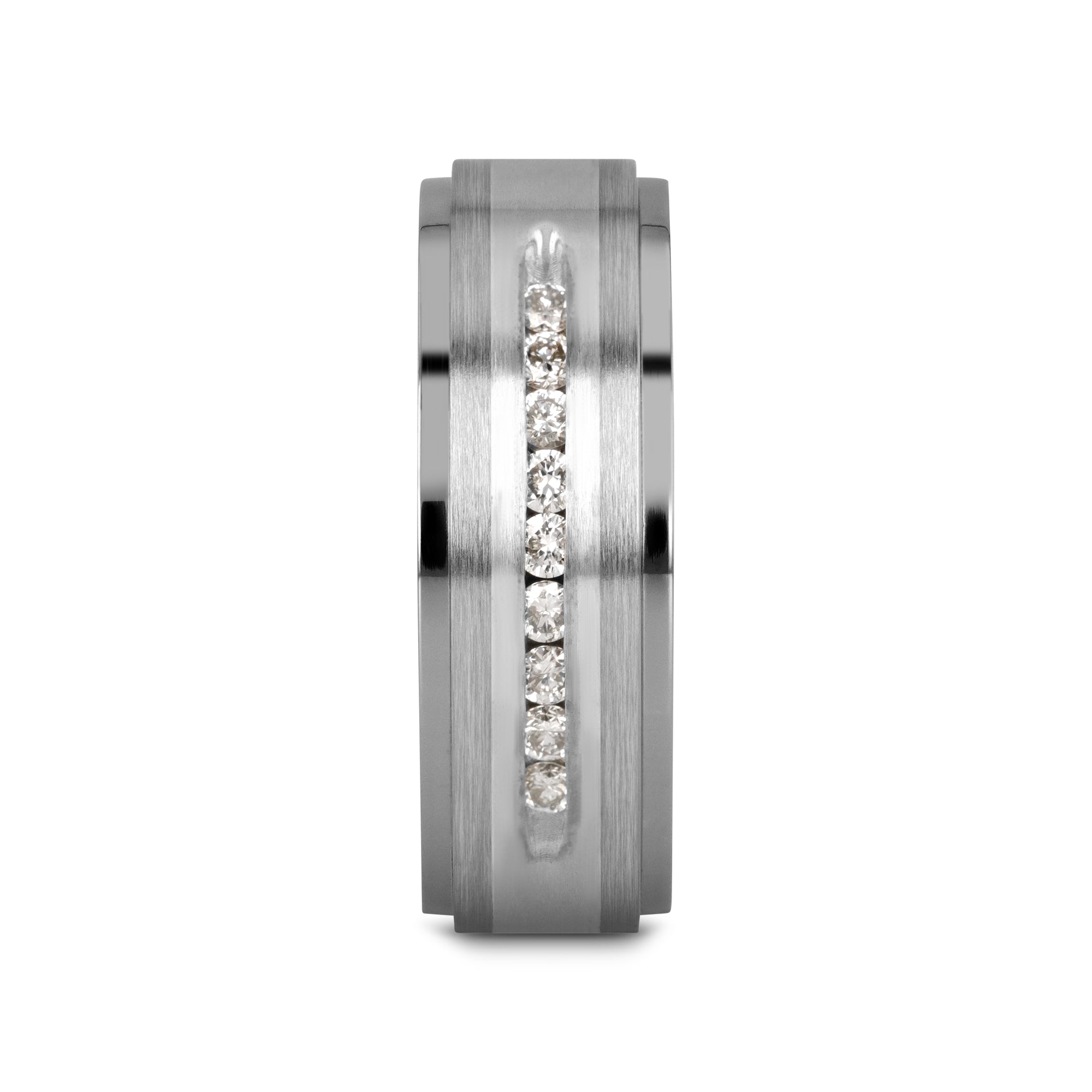 Alianza de boda BOND de titanio para hombre con incrustaciones de plata cepillada y 9 diamantes blancos engastados en canal (8 mm)