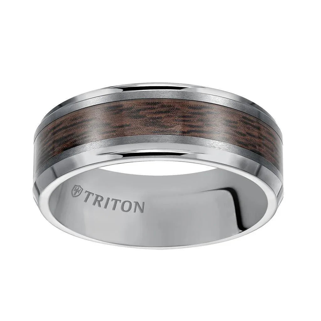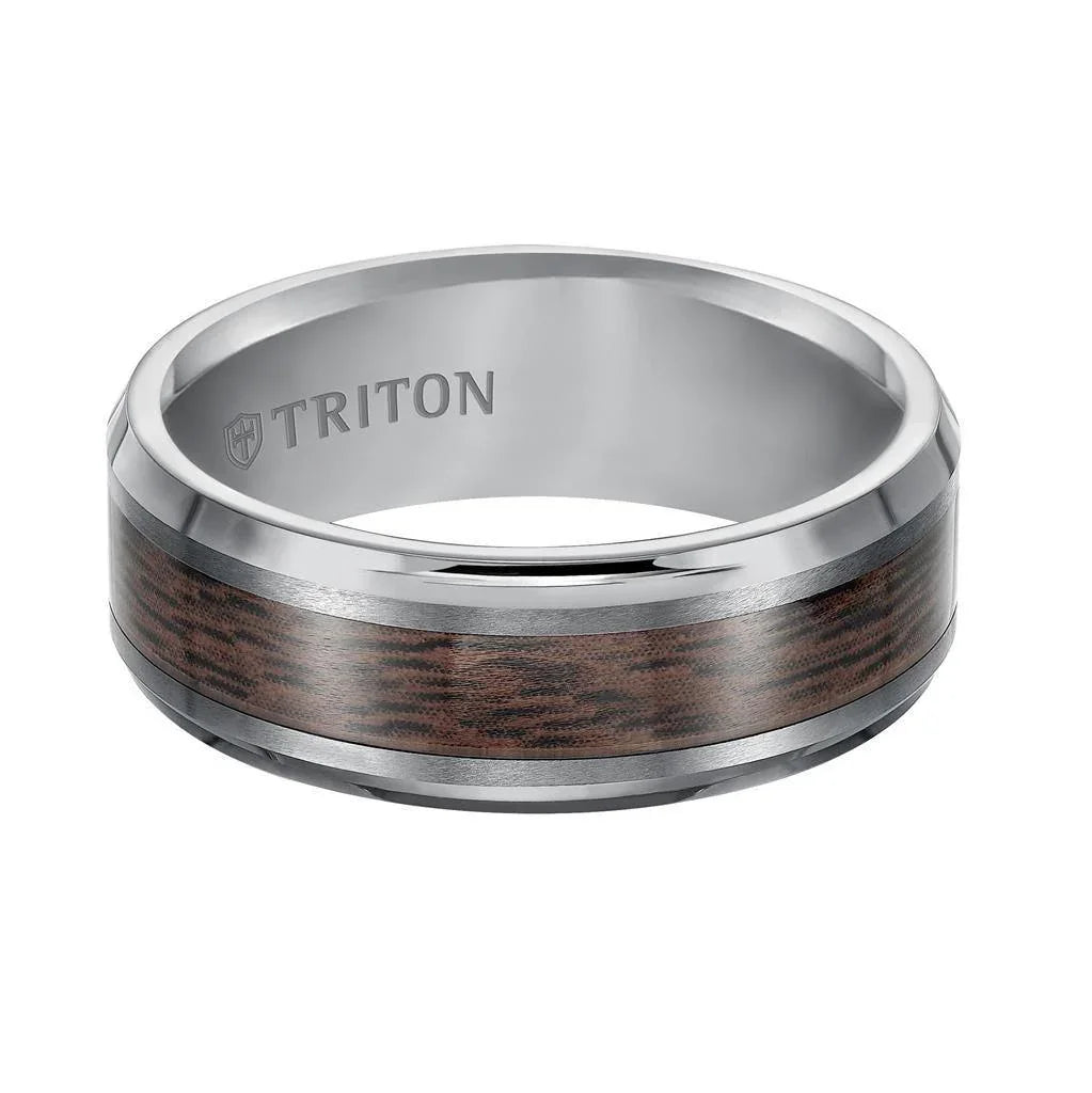 Alianza de tungsteno con incrustaciones de madera y bordes biselados - 8 mm