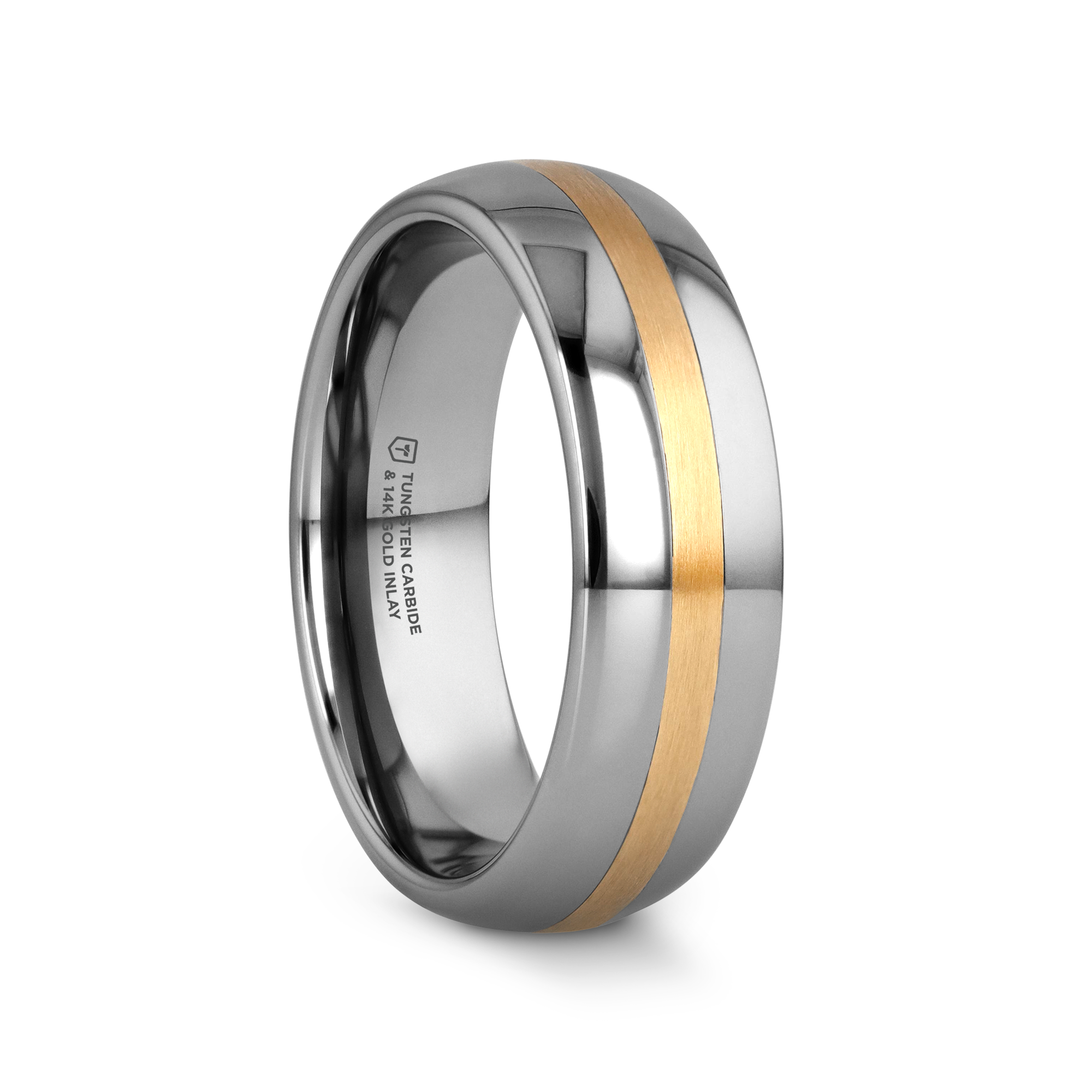Anillo de tungsteno abovedado con incrustaciones de oro de 14 quilates CENTURION de 6 mm u 8 mm