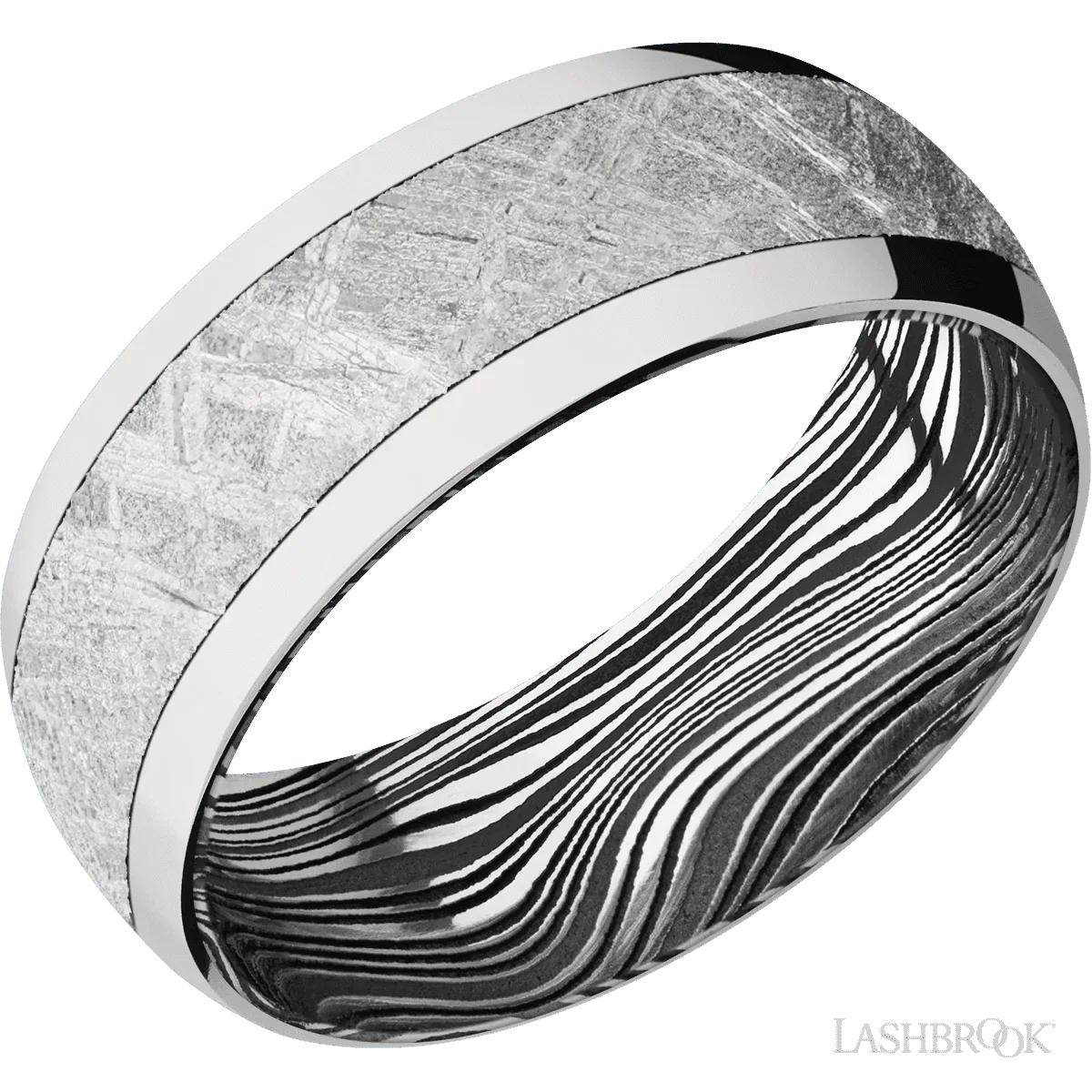 Cromo cobalto con acabado pulido e incrustaciones de meteorito y mármol - 8 mm