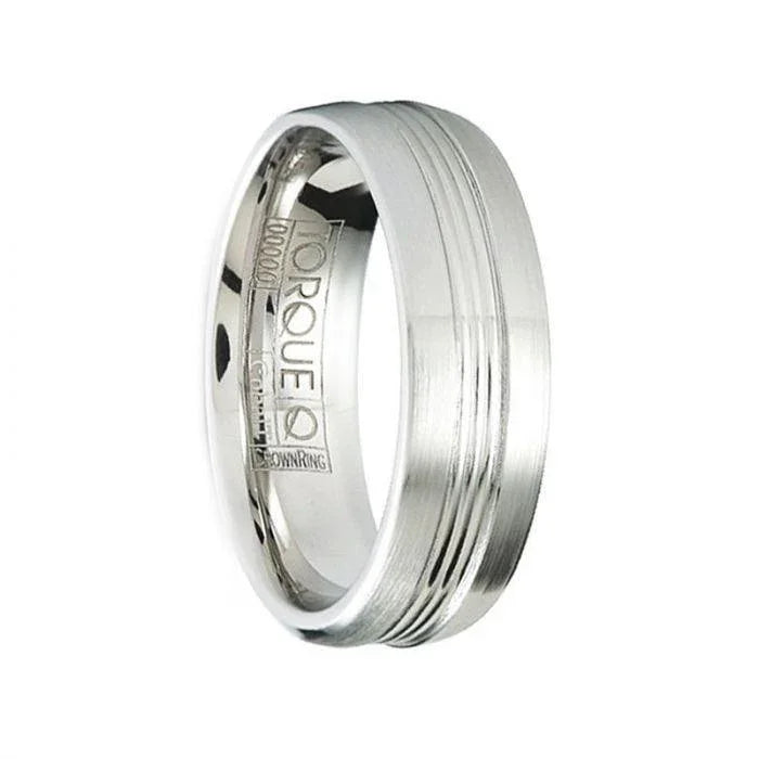 Este elegante anillo de bodas de cobalto para hombre de Crown Ring presenta una atractiva combinación de bordes cepillados y ranuras pulidas en el centro. Está elaborado con una banda interior redondeada. Está disponible en 7 mm de ancho. Larson Jewelers se enorgullece de presentar este anillo como parte de nuestra colección de ranuras. Este anillo cuenta con la garantía de por vida de Crown Ring, que cubre rayones, roturas y defectos de fabricación.