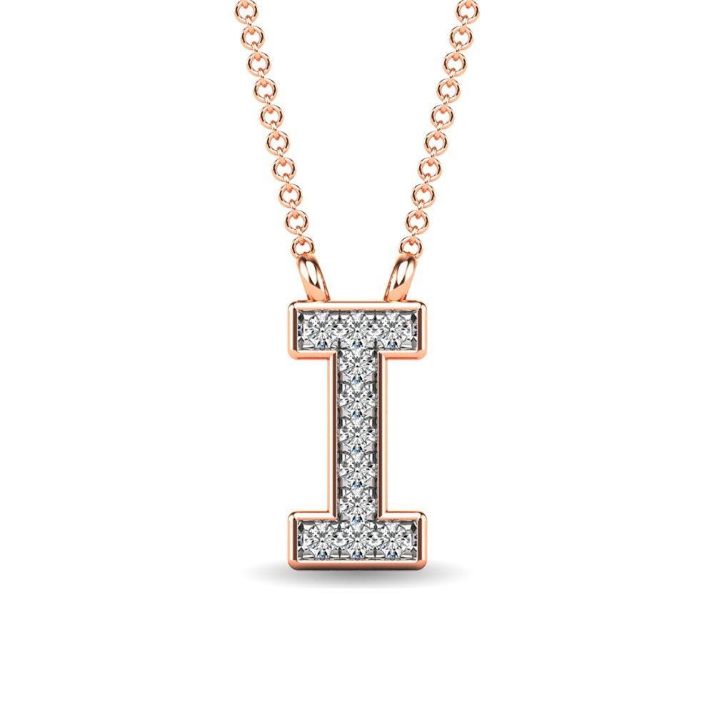 Colgante con letra I de diamantes de 1/20 quilates en oro rosa de 10 quilates