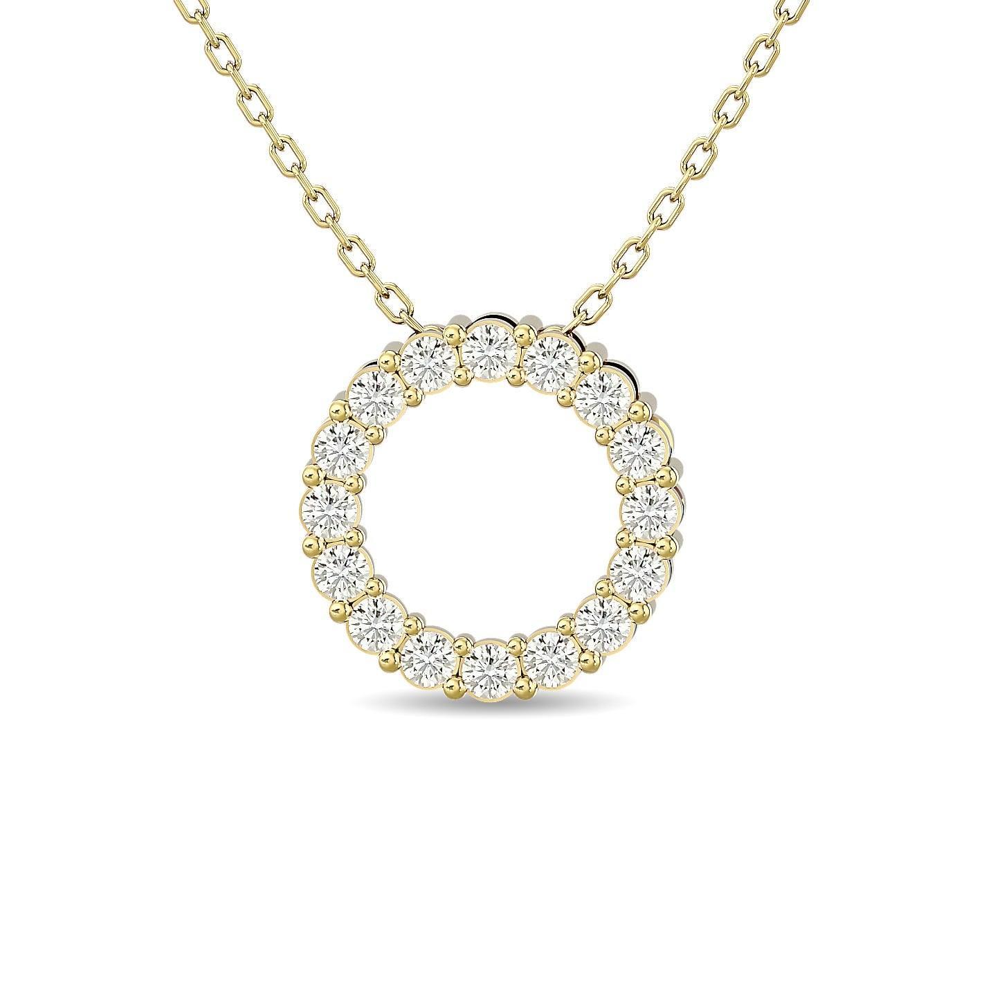 Colgante circular de diamantes de 1/4 ct. total en oro amarillo de 14 quilates