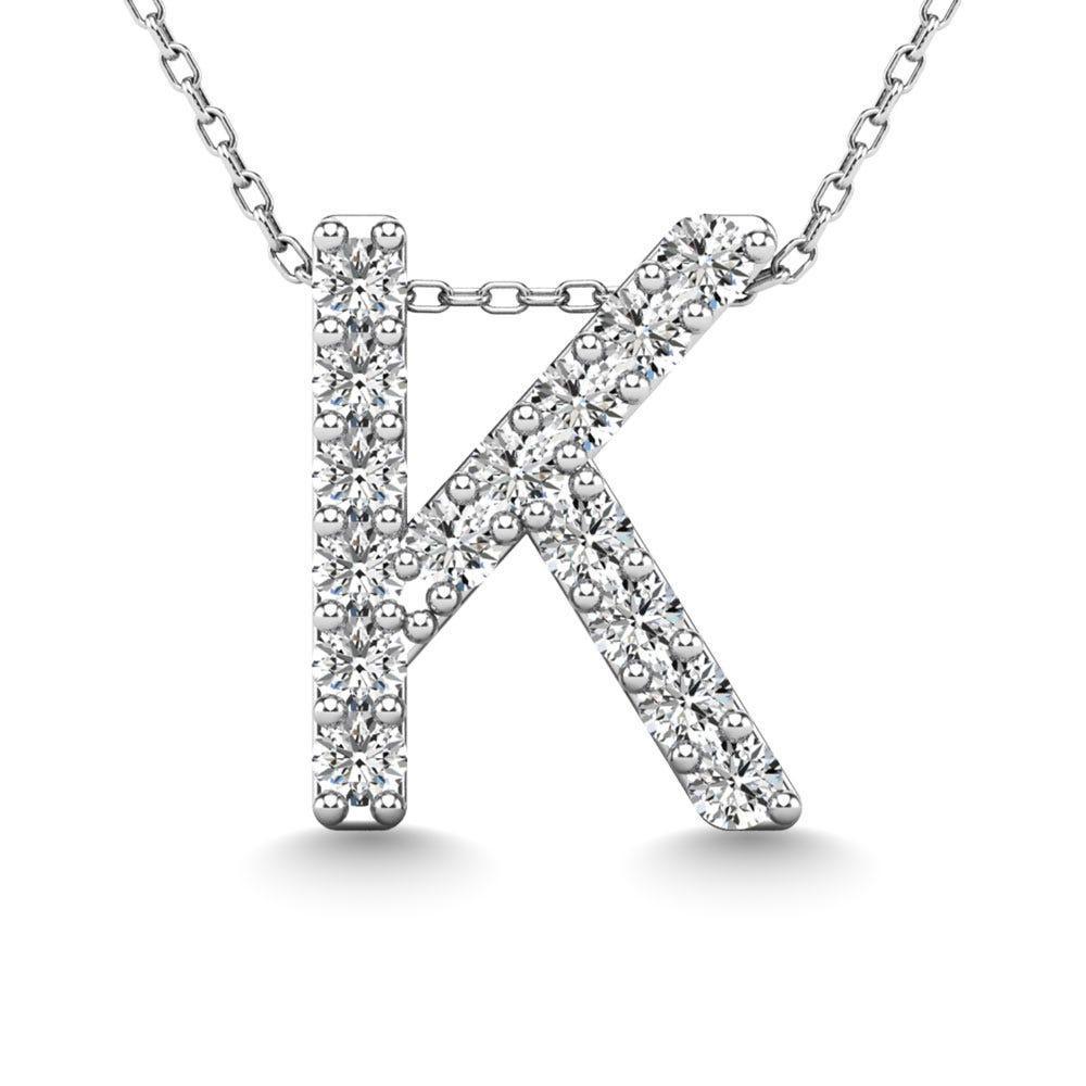 Colgante con la letra K de diamantes de 1/8 ct. en oro blanco de 14 quilates.