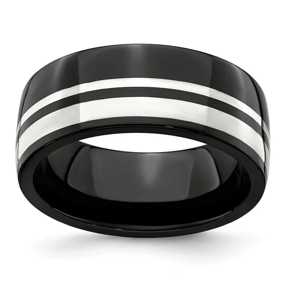 Edward Mirell - Correa pulida de titanio negro y plata de ley de 9 mm
