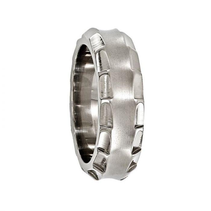 Anillo de titanio cepillado con bordes facetados y pulidos de Edward Mirell (8 mm)