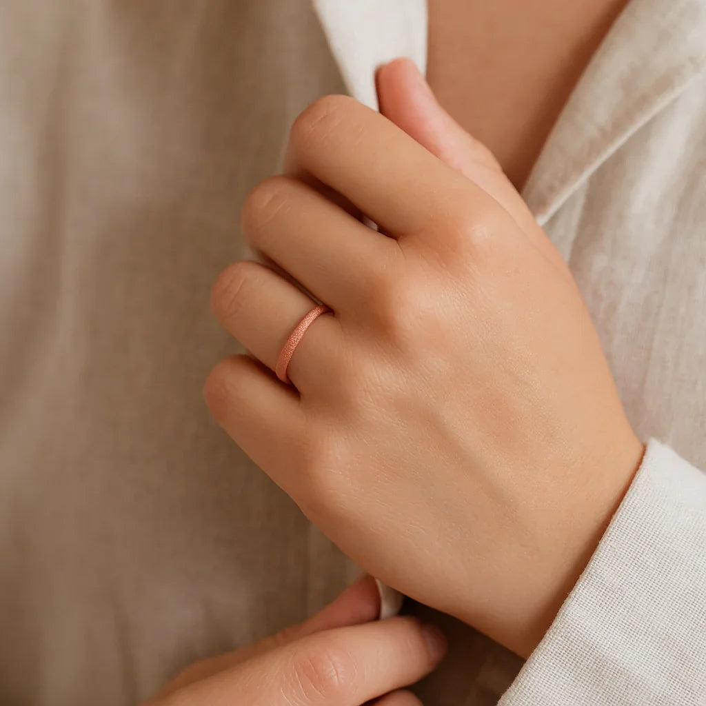 Anillo EMBER de carburo de tungsteno con baño de oro rosa y acabado cristalino arenado para mujer (2 mm)