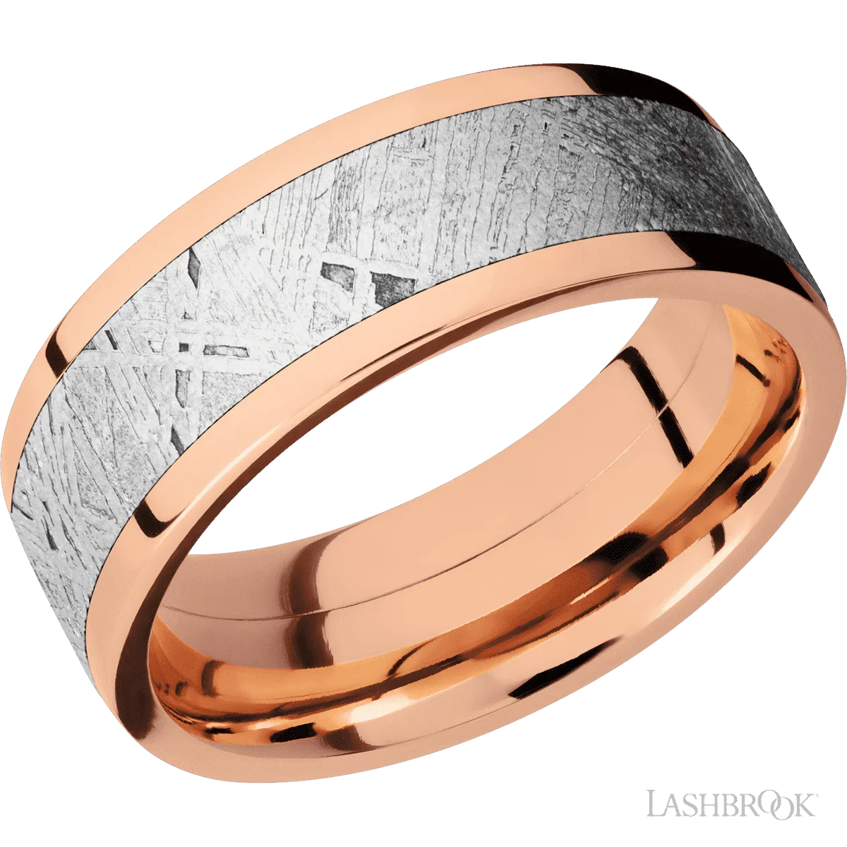 Oro rosa plano de 14 quilates con acabado pulido e incrustación de meteorito - 8 mm