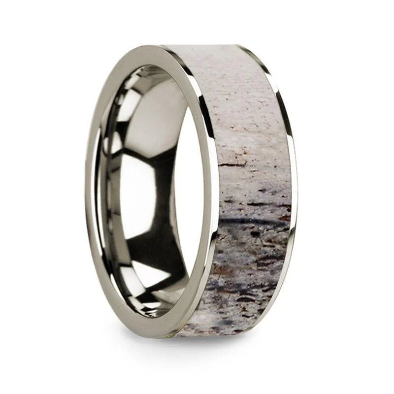 Anillo de bodas de oro blanco de 14 k pulido plano con incrustación de asta de ciervo en degradado (8 mm)