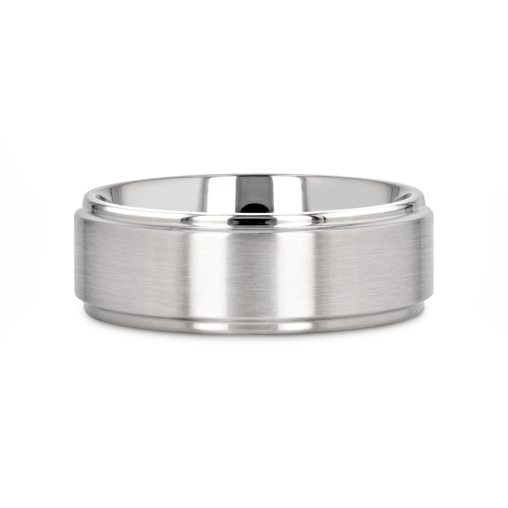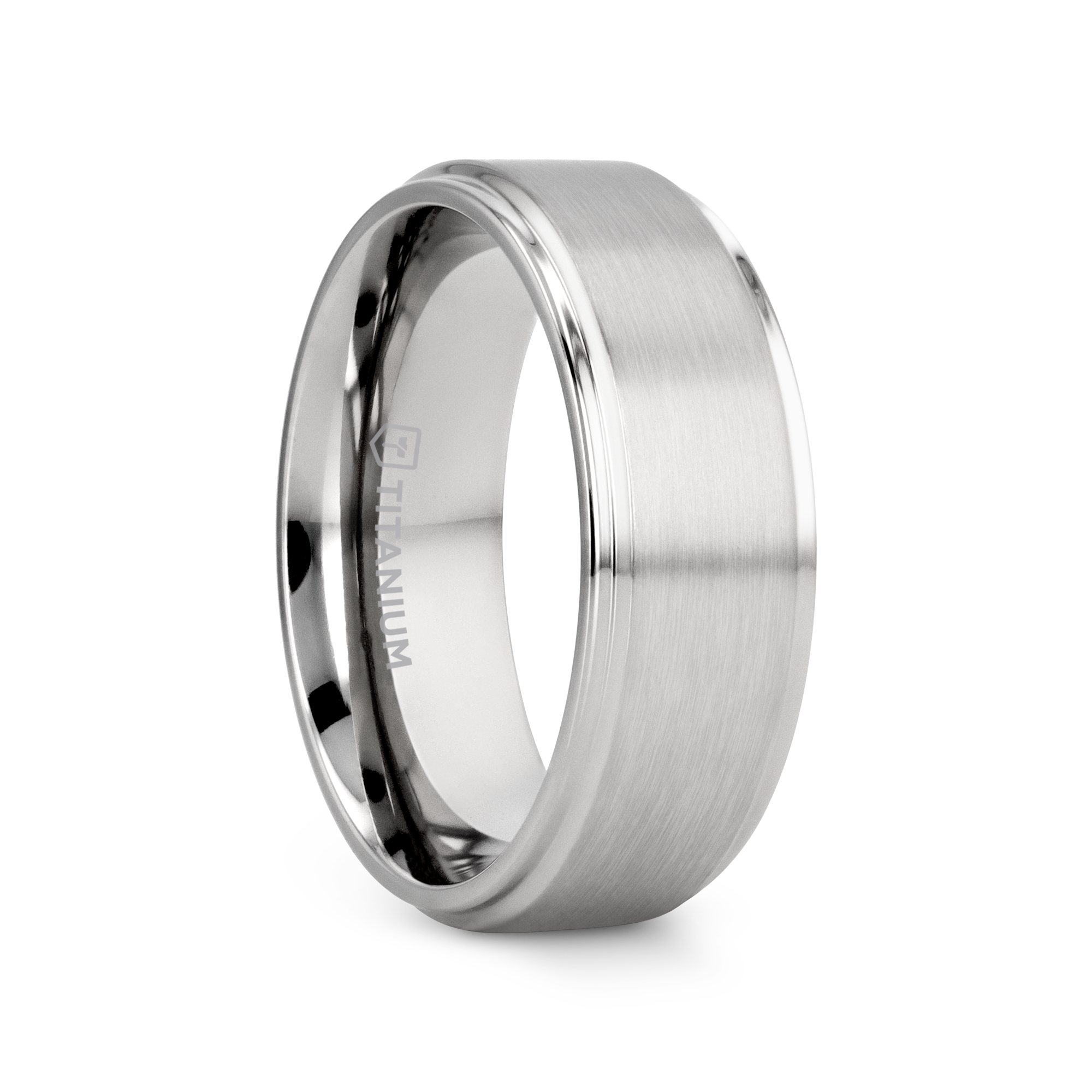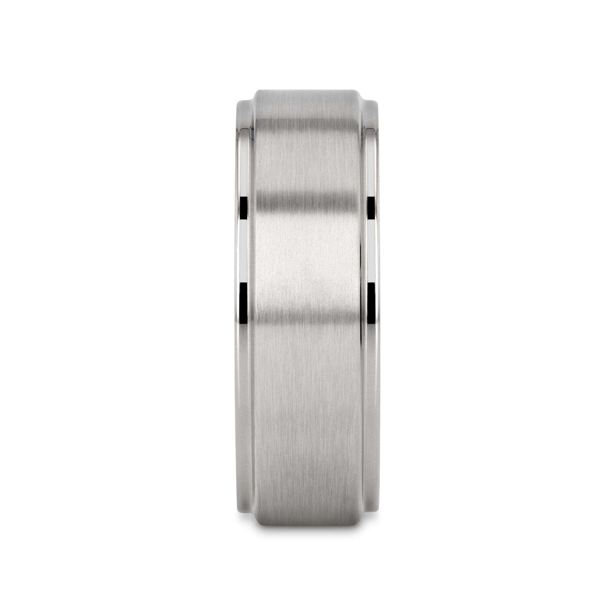 Anillo de bodas RHINOX de titanio cepillado con centro elevado y bordes escalonados pulidos para hombre (8 mm)