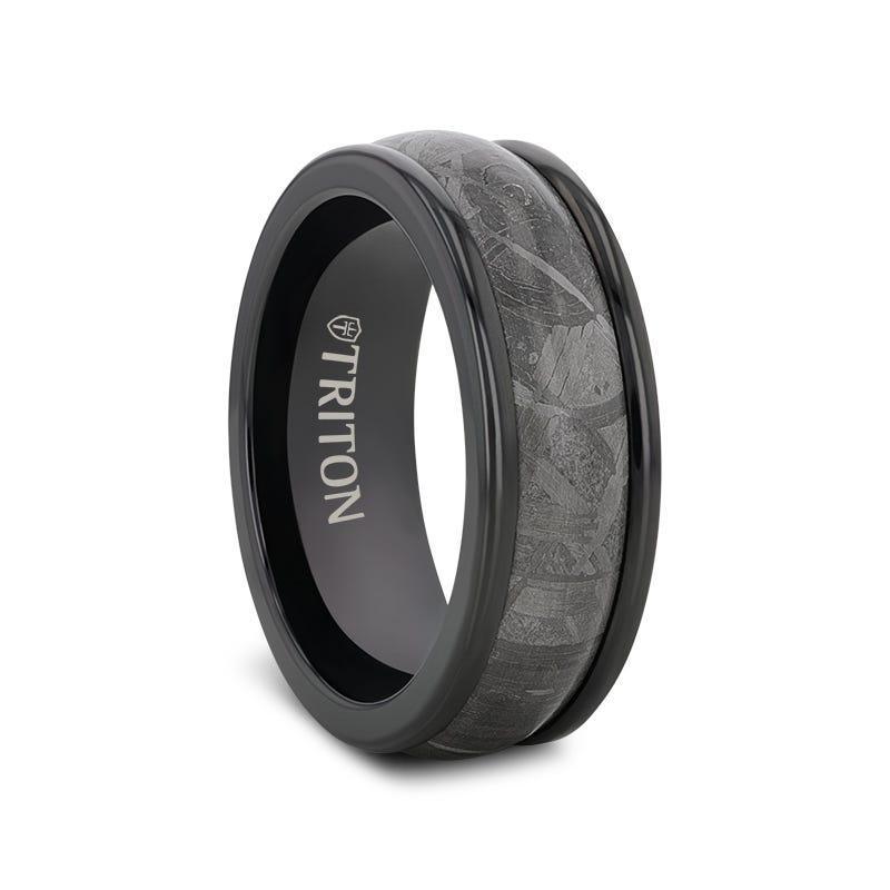- Embárcate en un viaje fuera de lo común con la alianza de boda de tungsteno negro con inserto de meteorito de borde redondo de 8 mm de Triton. Deja que la grandeza del universo te envuelva.