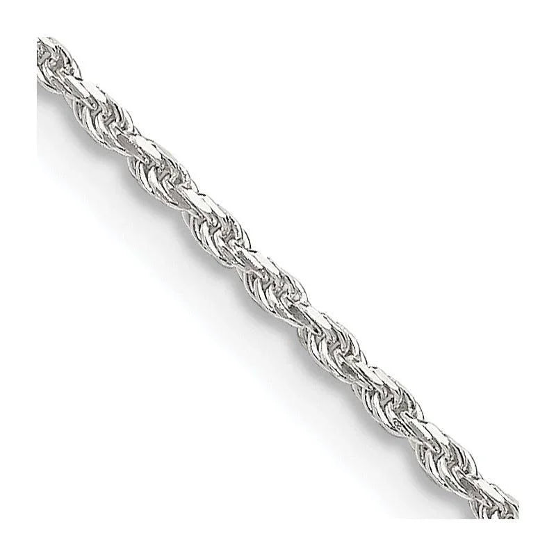 Collar de cadena de cuerda con corte de diamante de 1,5 mm de plata esterlina con extensión de 2 pulgadas.