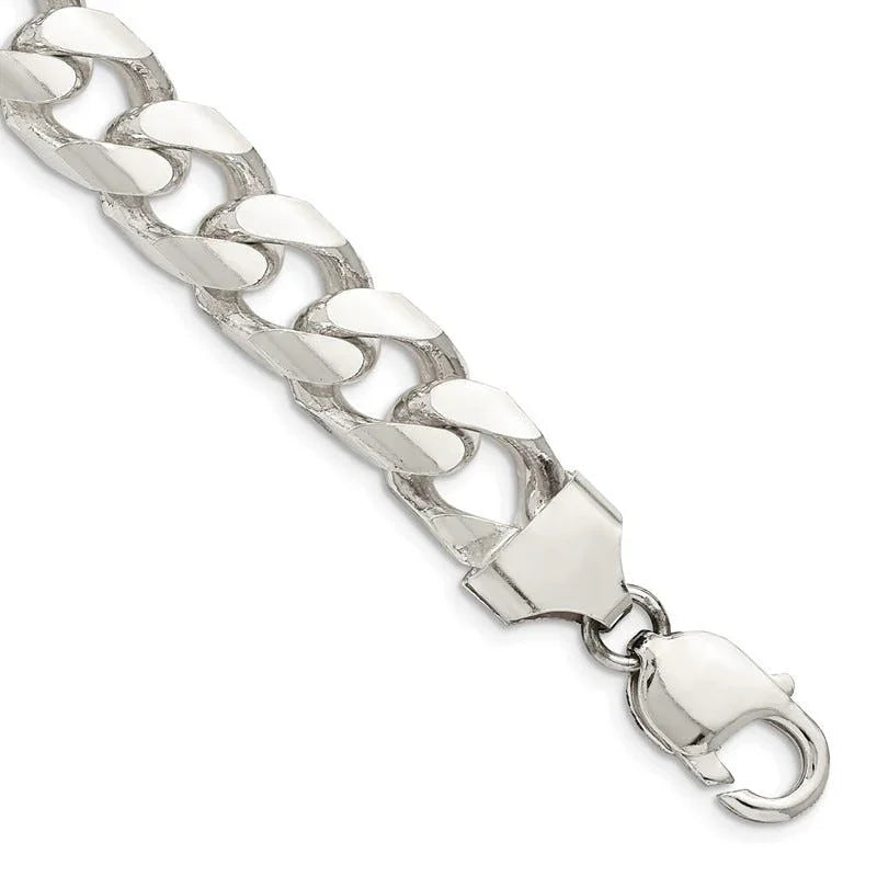 Pulsera de cadena de eslabones de plata de ley de 11 mm con cúpula y cierre de doble punta lateral