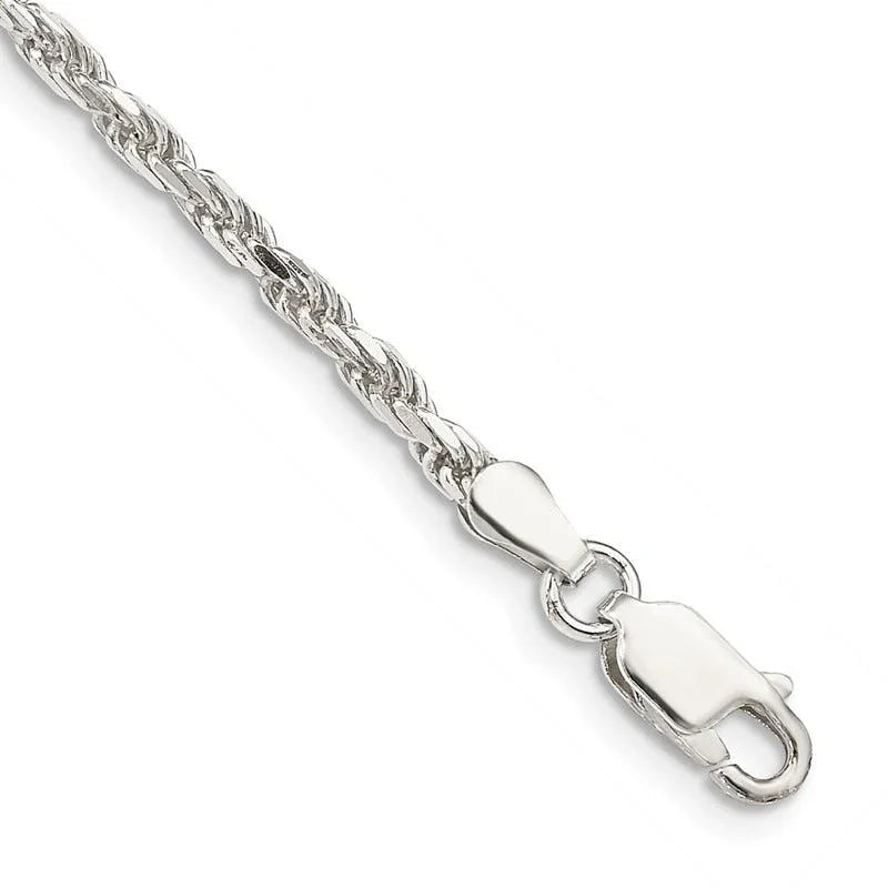 Pulsera de cadena de cuerda con corte de diamante de 2,5 mm de plata esterlina