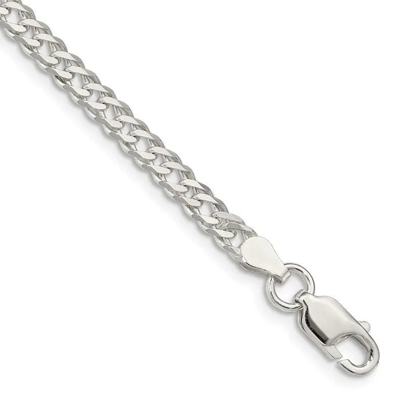 Pulsera de cadena doble plana de 4,25 mm y 6 lados D/C en plata de ley