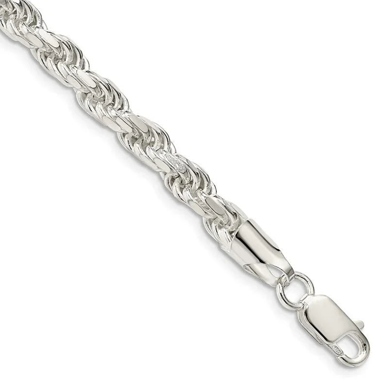 Pulsera de cadena de cuerda con corte de diamante de 5,75 mm de plata esterlina