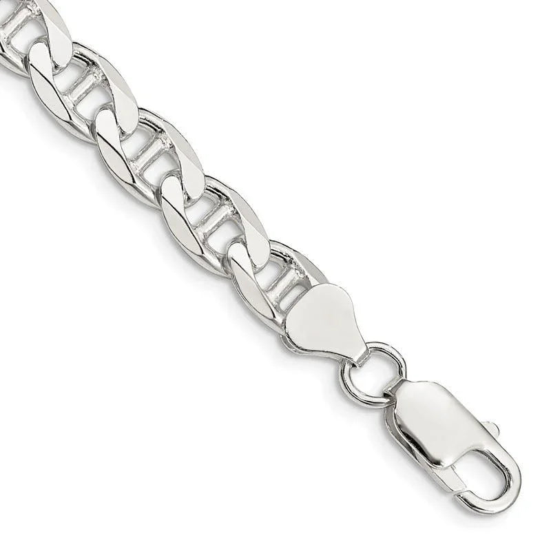 Pulsera de cadena de ancla cubana plana de plata de ley de 7,4 mm