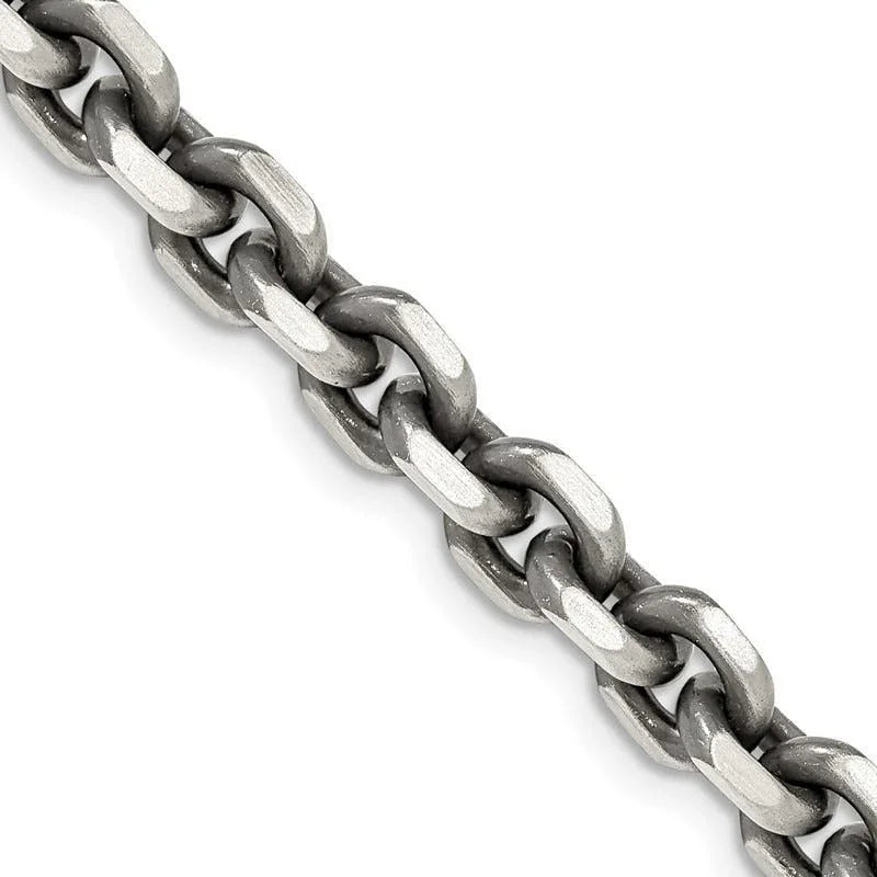 Collar de cadena de eslabones abiertos alargados de 7 mm de diámetro interior en plata de ley envejecida