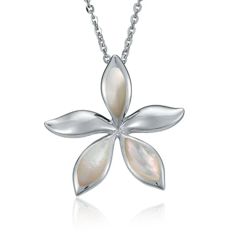 Colgante de plumeria en plata de ley con incrustaciones de nácar blanco