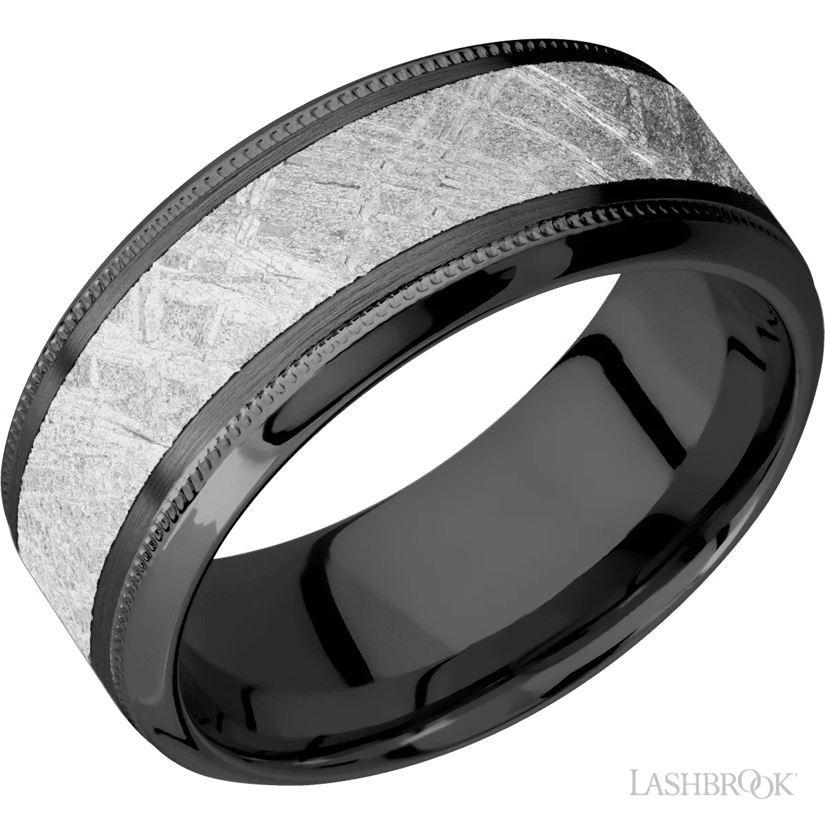 Zirconio con acabado satinado y pulido e incrustación de meteorito - 9 mm