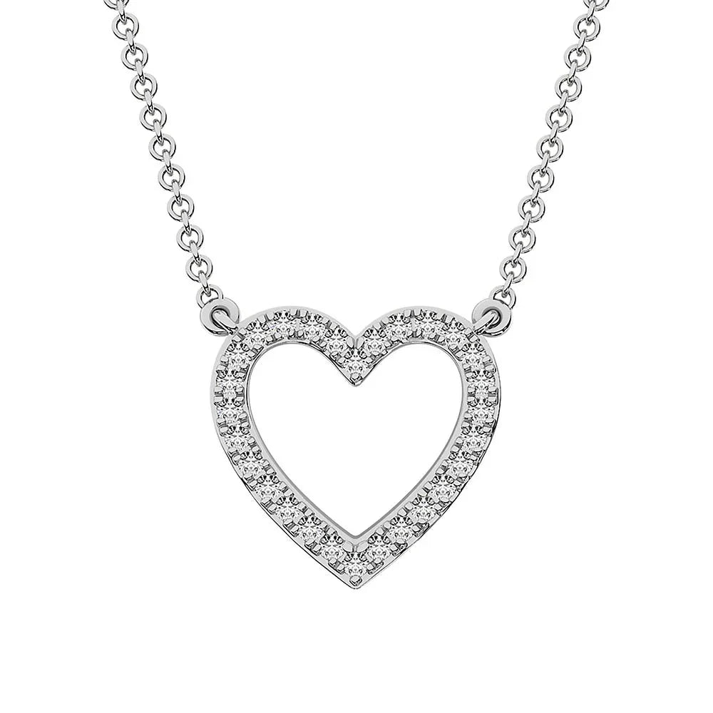 Collier cœur en or blanc 10 carats avec diamants 1/4 ct.