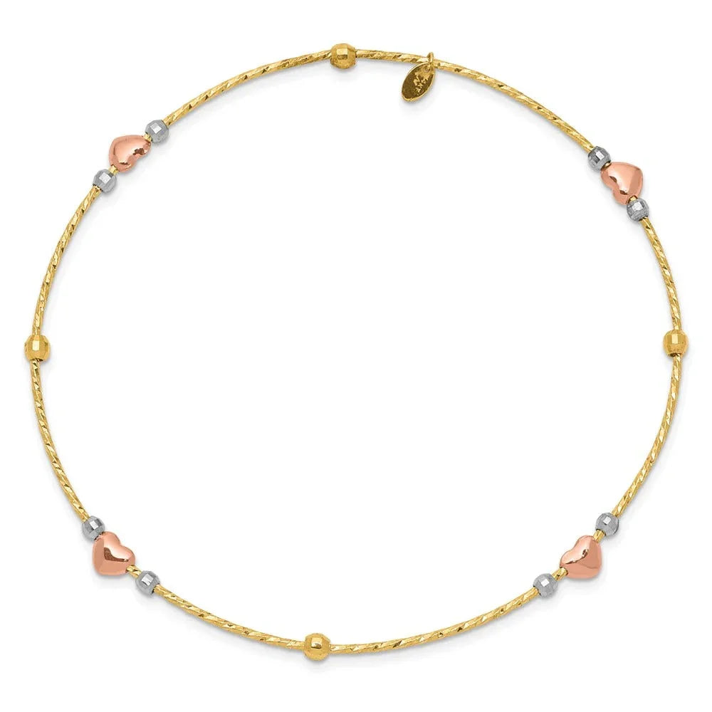 Bracelet jonc à enfiler en forme de cœur tricolore 14 carats, taille diamant