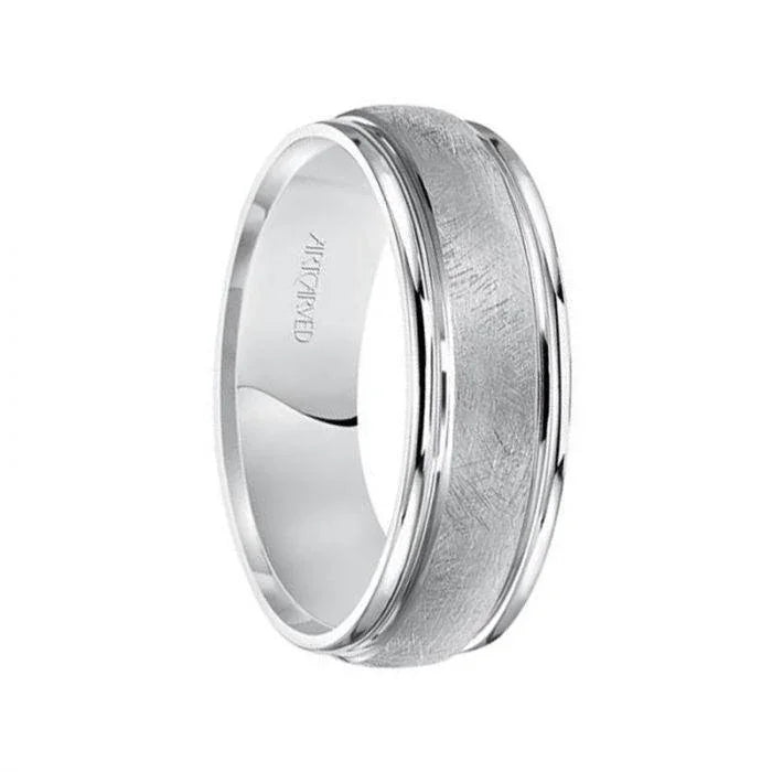 Voici une alliance séduisante en or blanc 14 carats. Son design bombé, soigneusement travaillé, offre une magnifique finition cristalline. Ses bords plats sont ornés de deux stries. D'une finesse parfaite, cette pièce incarne l'amour, aussi bien pour les hommes que pour les femmes. Cette bague est également disponible dans une variété d'autres métaux. Vous trouverez également des modèles similaires dans notre collection d'alliances en tungstène. Toutes les bagues Artcarved sont garanties à vie, couvrant la remise à taille et/ou le remplacement en cas de dommage accidentel, moyennant des frais d'expédition, de manutention et de traitement.