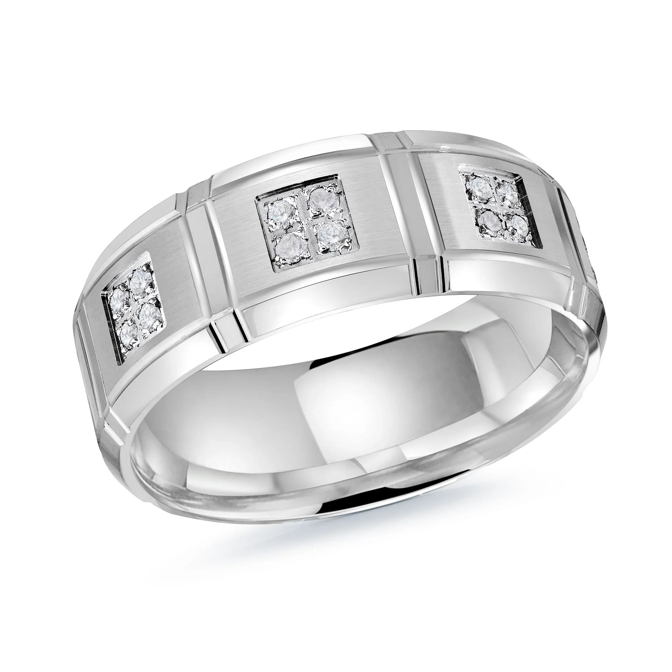Bague en or blanc 14 carats avec diamants incrustés, collection Executif de Malo – MRD-112-8W22