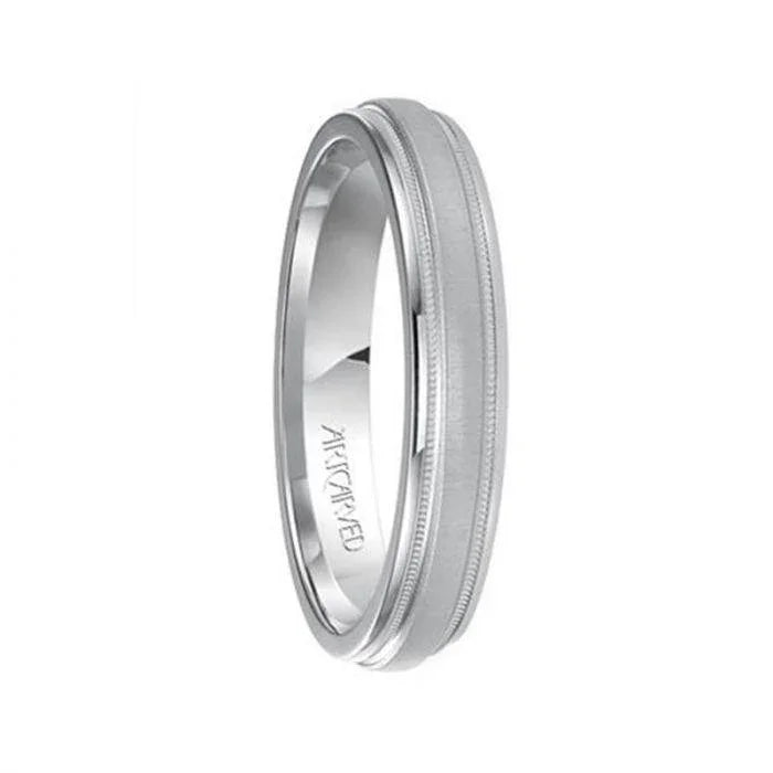 Alliance ADISON en or blanc 14 carats, finition brossée bombée au centre et bords roulés Milgrain par Artcarved - 4 mm, 6 mm et 8 mm