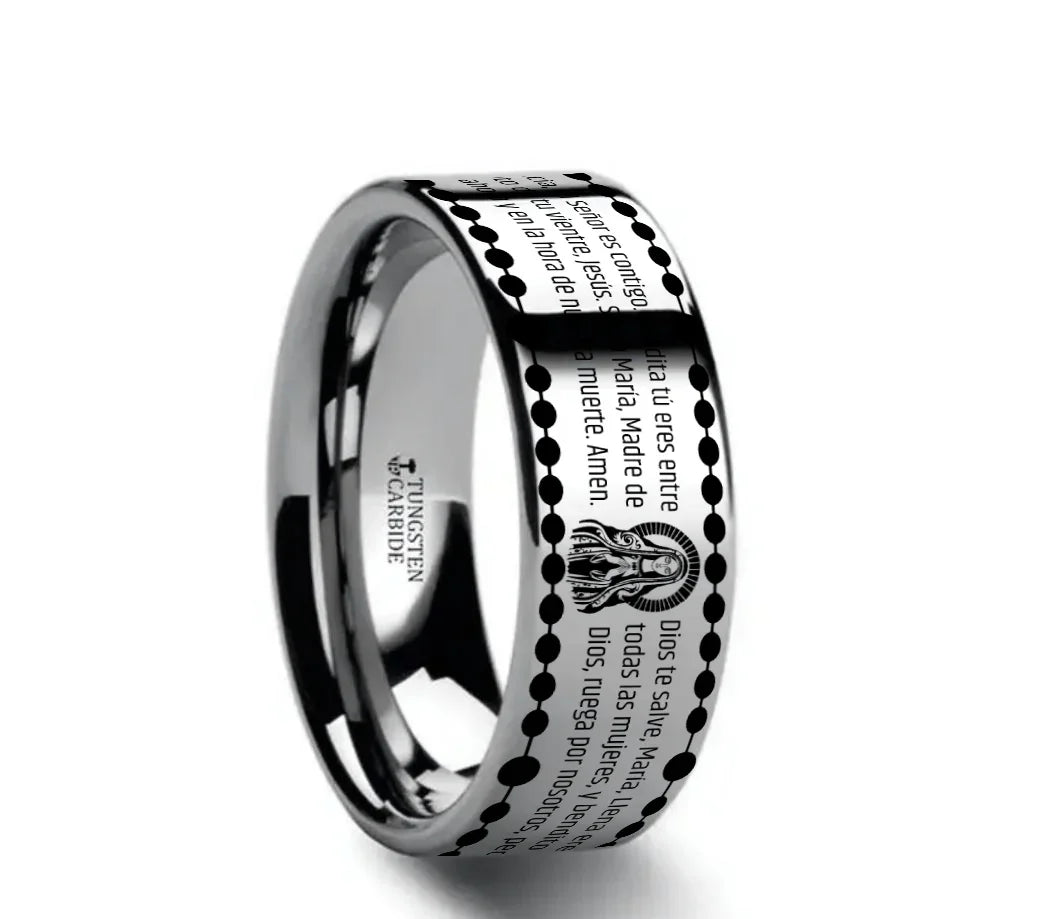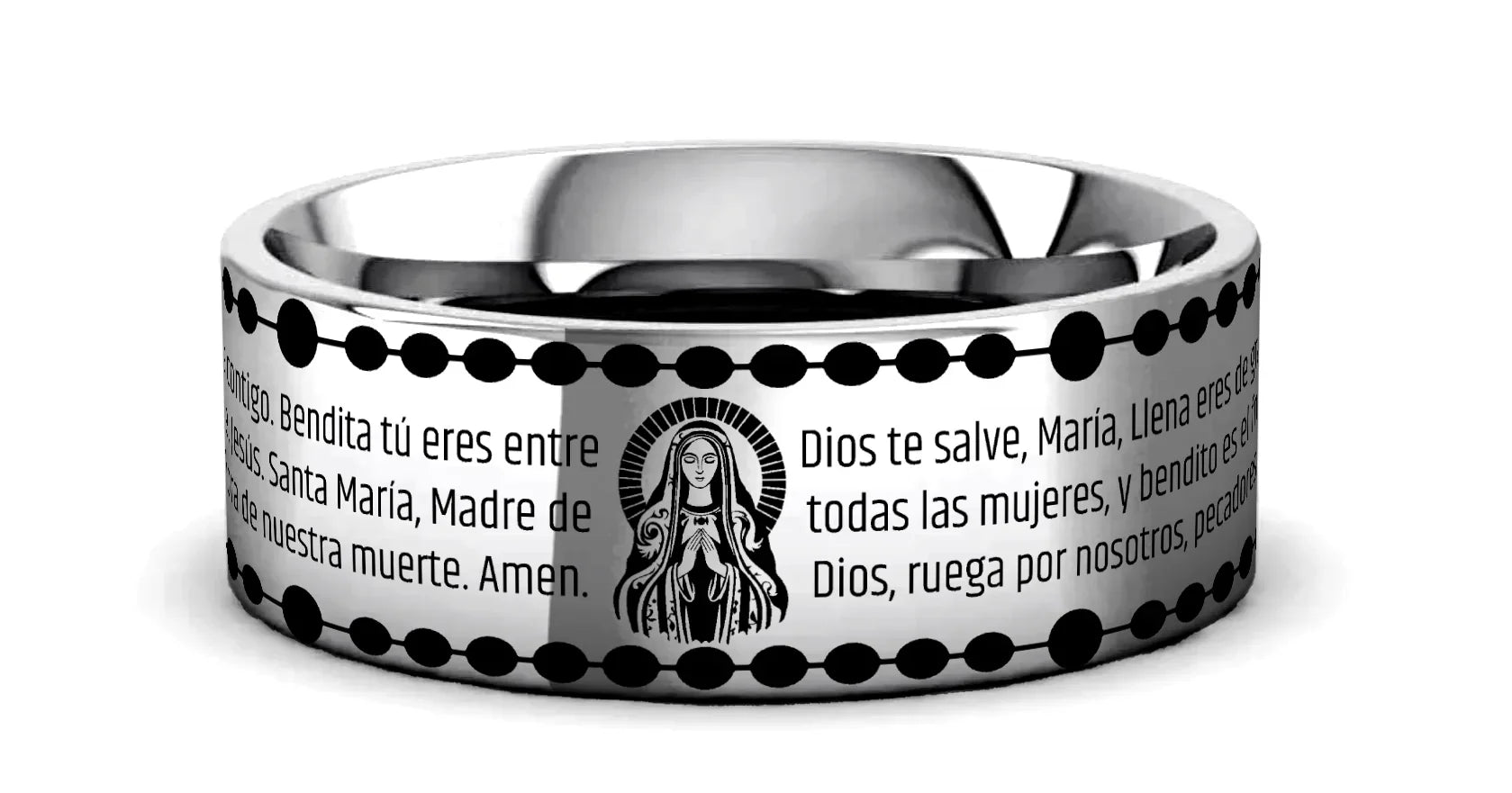 Nous présentons l'anneau de carburateur de tungstène à Ave María Lleva, cet anneau magnifique comme un témoignage de votre foi et de votre dévouement.