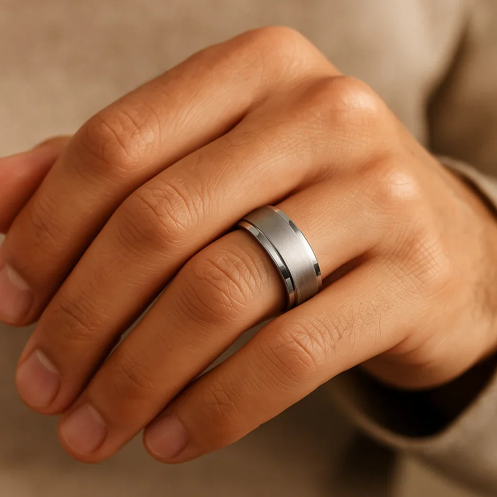 Alliance confort en carbure de tungstène avec finition satinée au centre, 8 mm, par Triton Rings