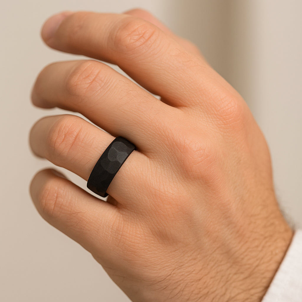 Bague en tungstène noir CHASM avec finition martelée - 8 mm