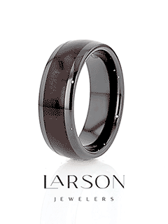 Alliance CLARET en céramique noire polie pour homme, forme bombée, avec incrustations de séquoia - 8 mm