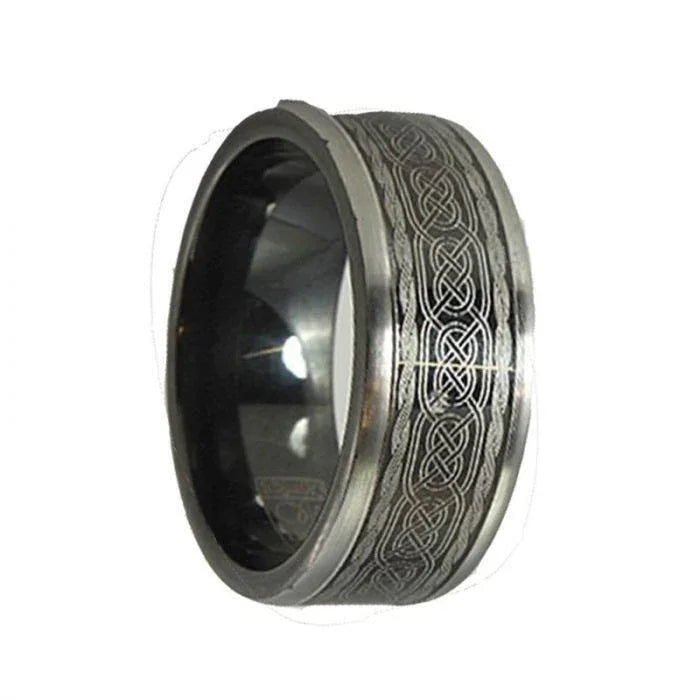 Alliance DEMITRI Torque en cobalt noir poli au laser, motif celtique central, intérieur noir - 9 mm
