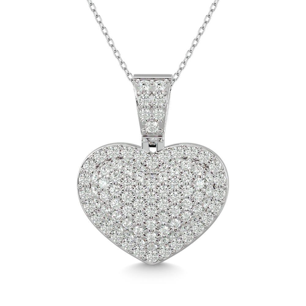 Pendentif cœur en or blanc 10 carats avec diamants de 1 1/2 ct