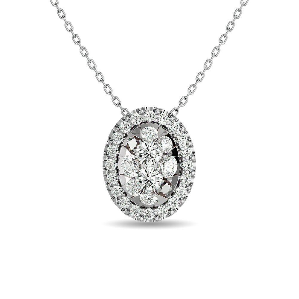 Pendentif en or blanc 14 carats avec diamants de 1/2 ct et forme ovale