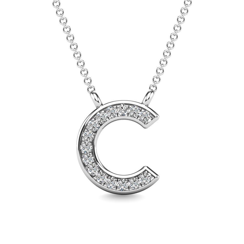 Pendentif lettre C en or blanc 10 carats et diamants 1/20 ct.