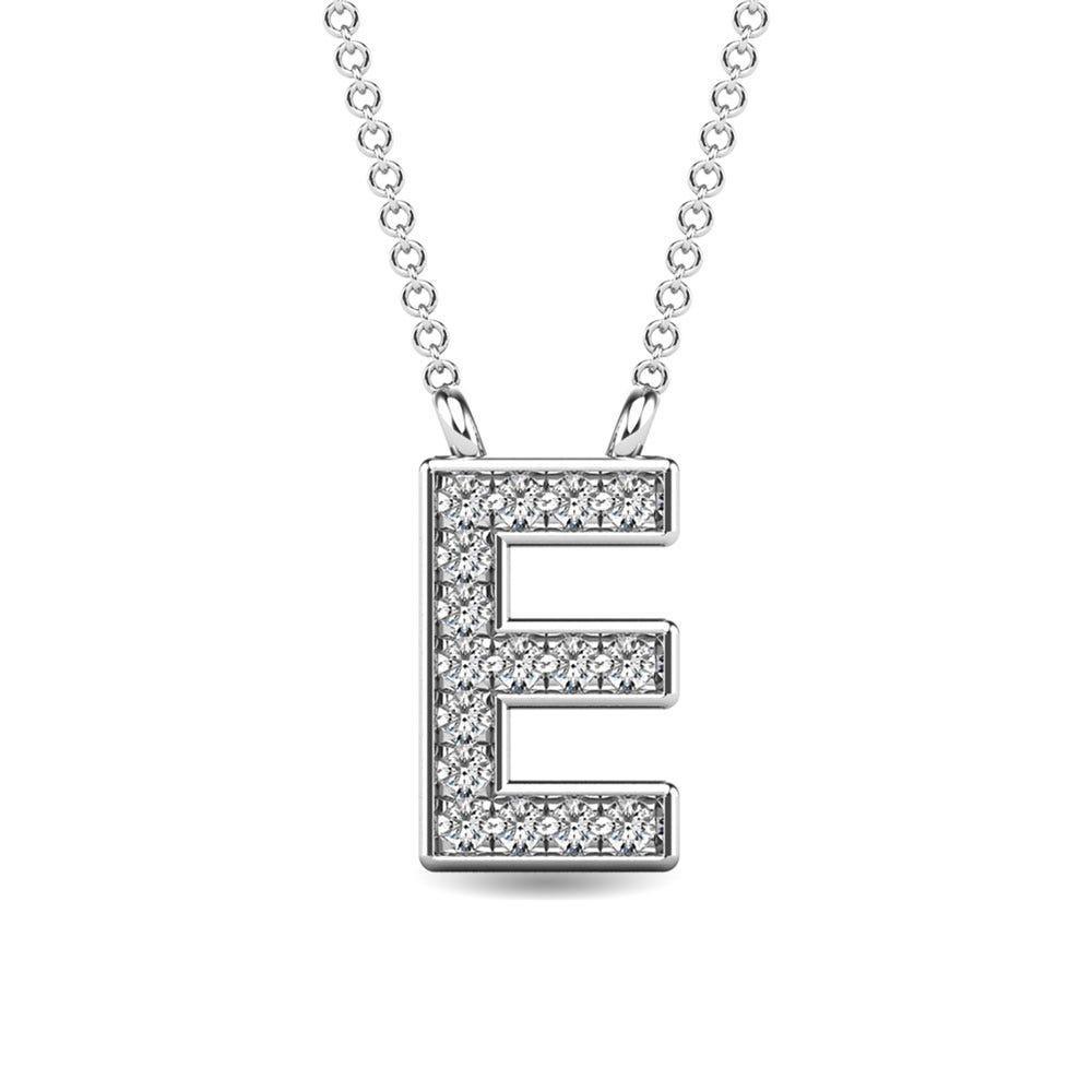 Pendentif lettre E en or blanc 10 carats et diamants 1/20 ct.