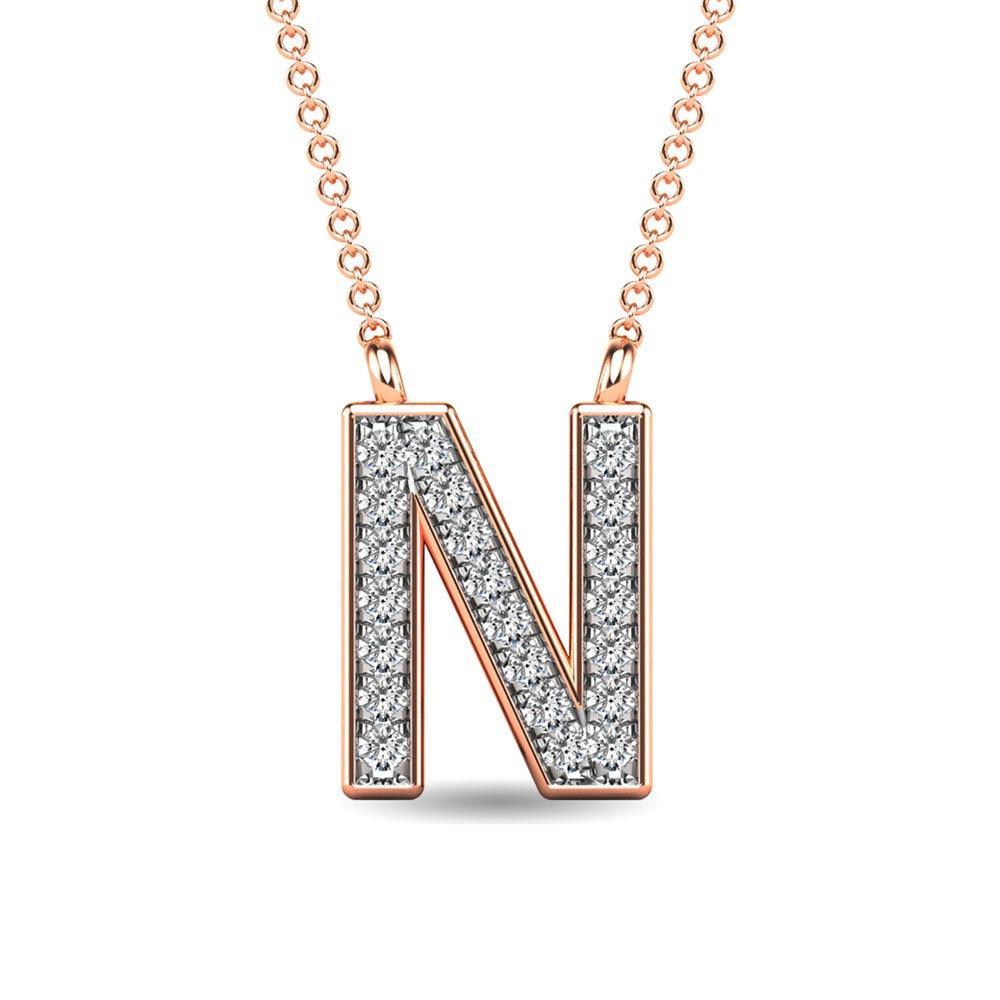 Pendentif lettre N en or rose 10 carats, diamant 1/20 ct.