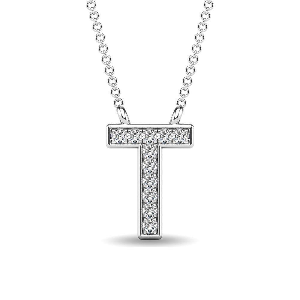 Pendentif lettre T en or blanc 10 carats et diamants 1/20 ct.