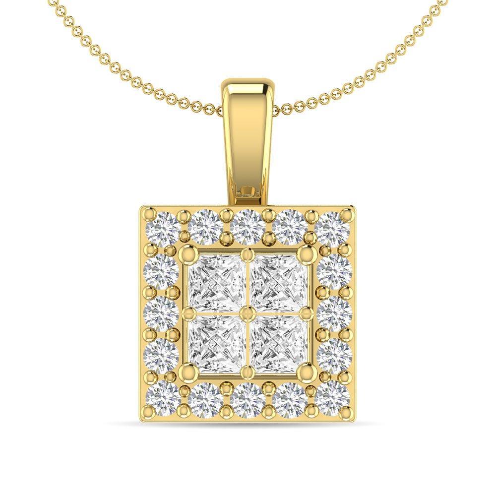 Pendentif fantaisie en or jaune 14 carats avec diamants ronds et princesse, 1/3 ct.