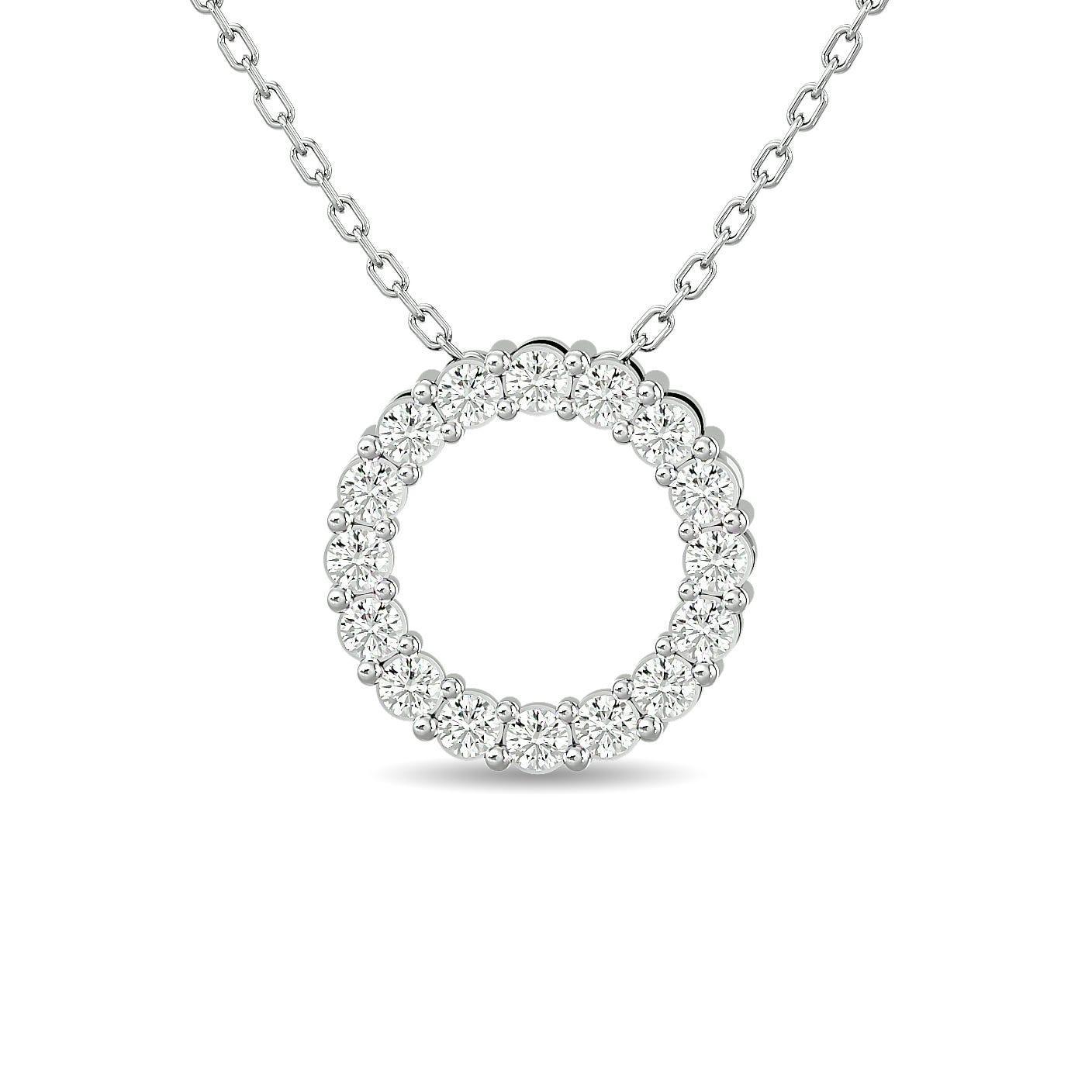 Pendentif rond en or blanc 14 carats avec diamants 1/4 ct.