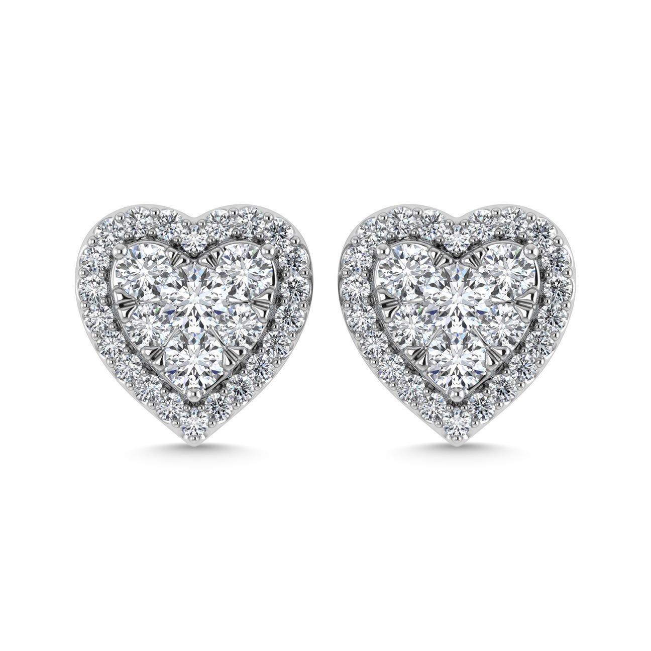 Boucles d'oreilles cœur en or blanc 14 carats et diamants 2 carats