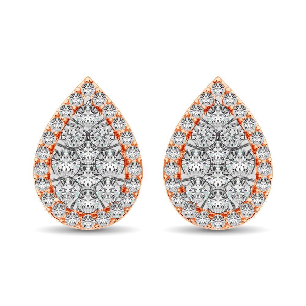 Boucles d'oreilles fantaisie en or rose 14 carats avec diamants de 3/4 ct et forme poire