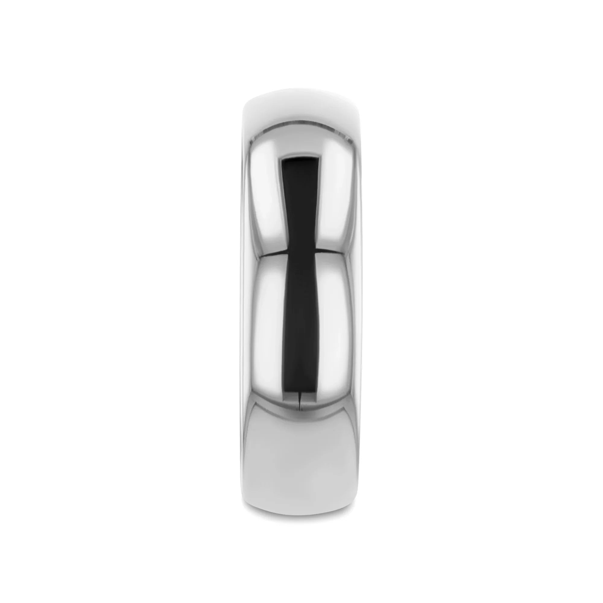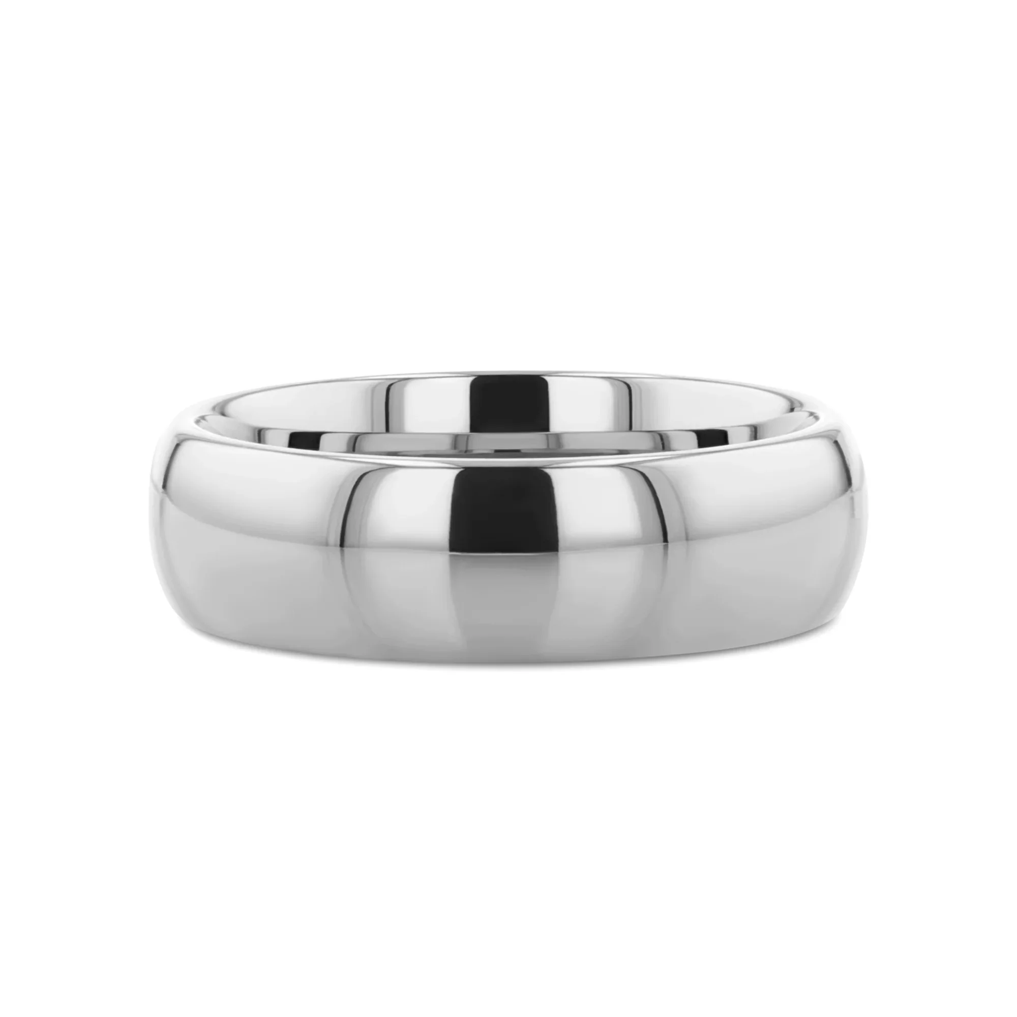 Fabriquée en carbure de tungstène de haute qualité, cette alliance arbore un design bombé traditionnel et des bords arrondis finement polis. Cette bague élégante peut être portée comme bague de promesse ou comme alliance.